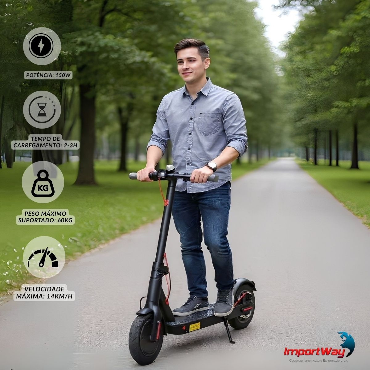 Chegue mais rápido, com conforto e estilo, usando o Patinete Elétrico 350W. Desenvolvido para jovens e adultos de até 120kg, ele combina potência, praticidade e segurança, sendo a escolha ideal para deslocamentos curtos, passeios ou momentos de lazer.