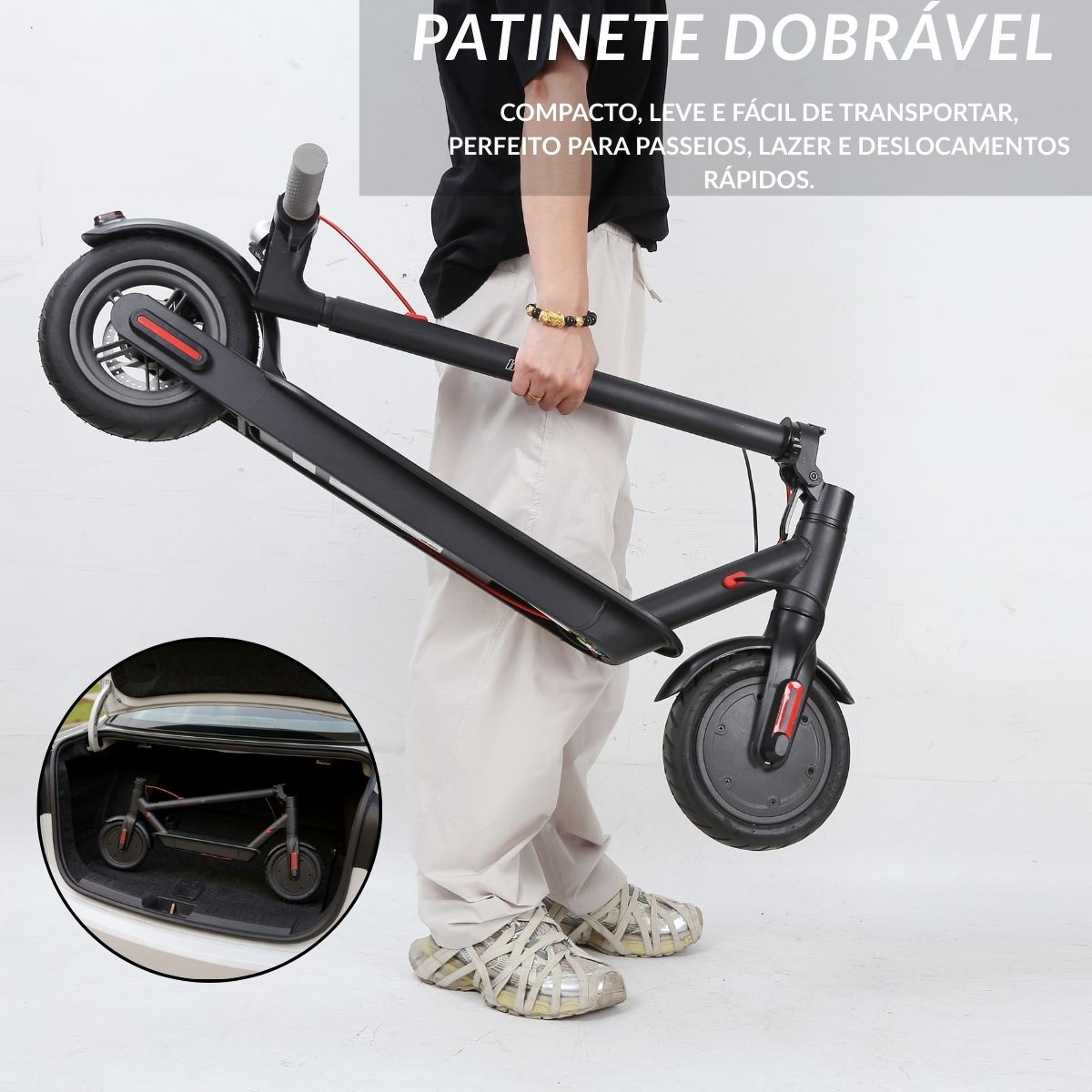 Além disso, conta com freio elétrico eficiente, proporcionando maior controle durante o uso