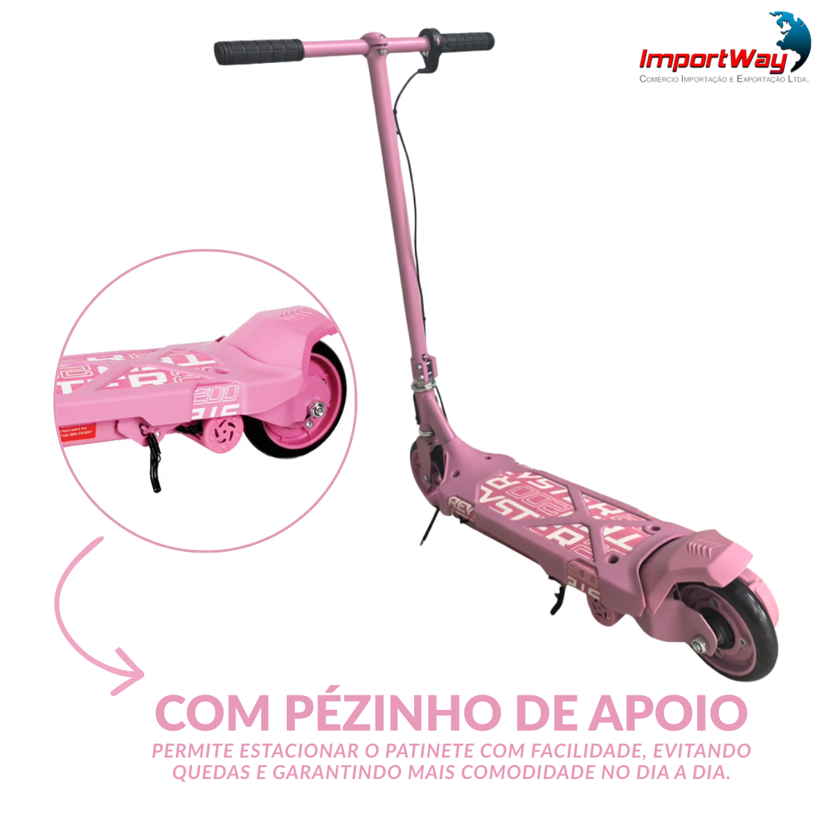 Patinete Elétrico Infantil 80W Até 45kg Rosa Importway