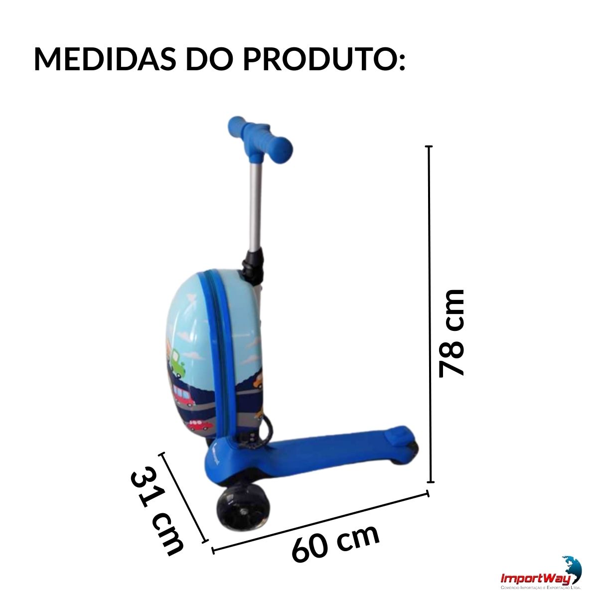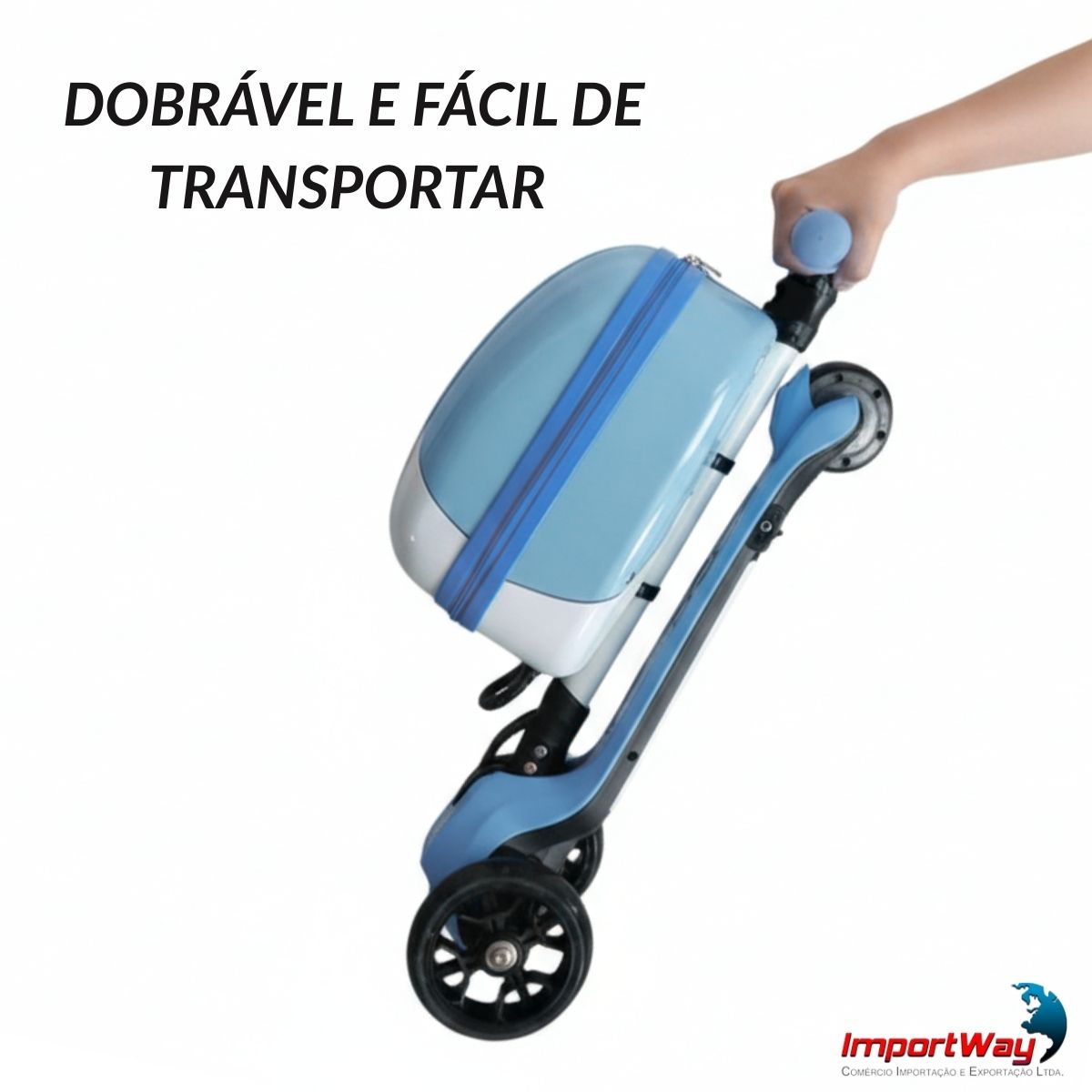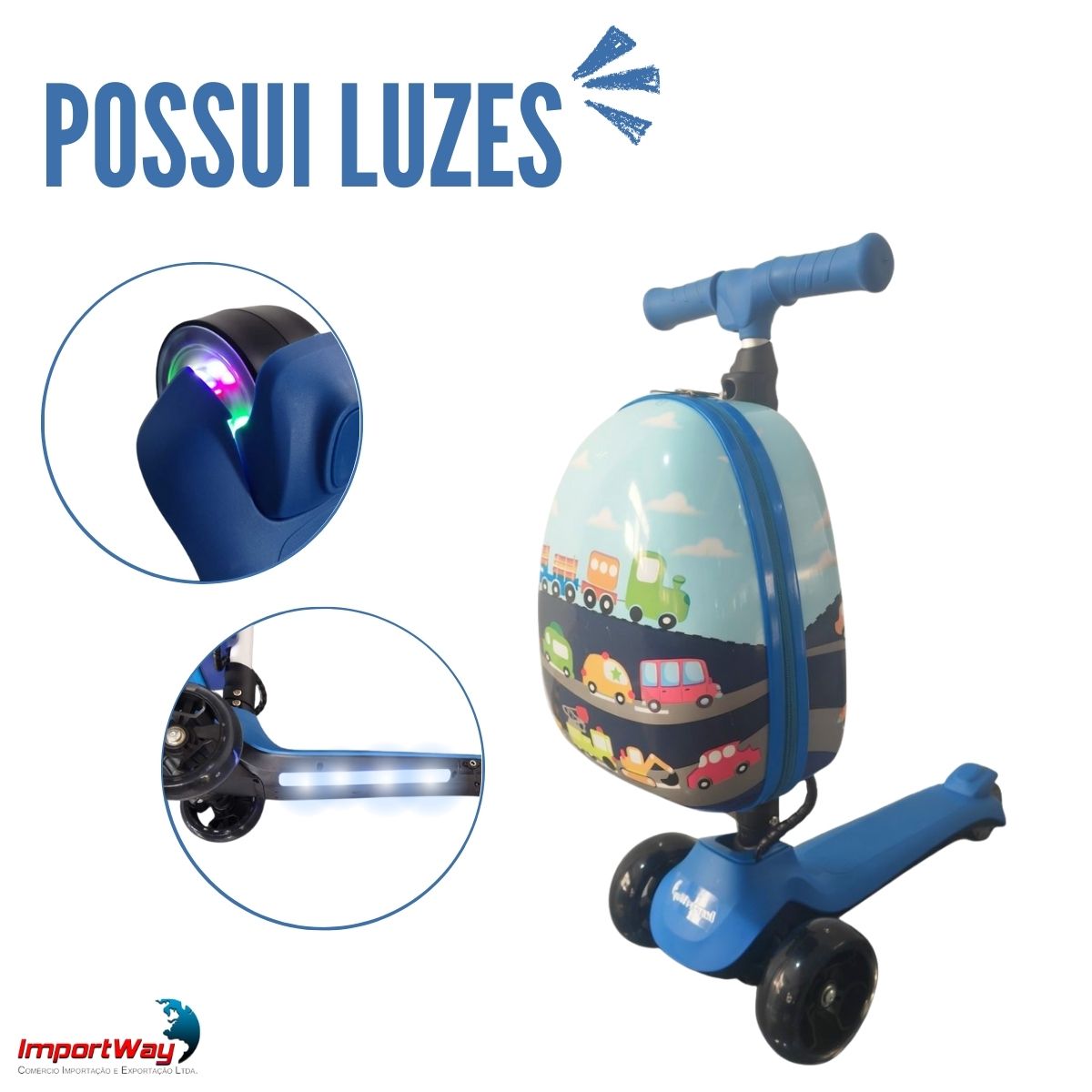 Patinete Elétrico Infantil 3 Rodas Com Mala Azul Importway
