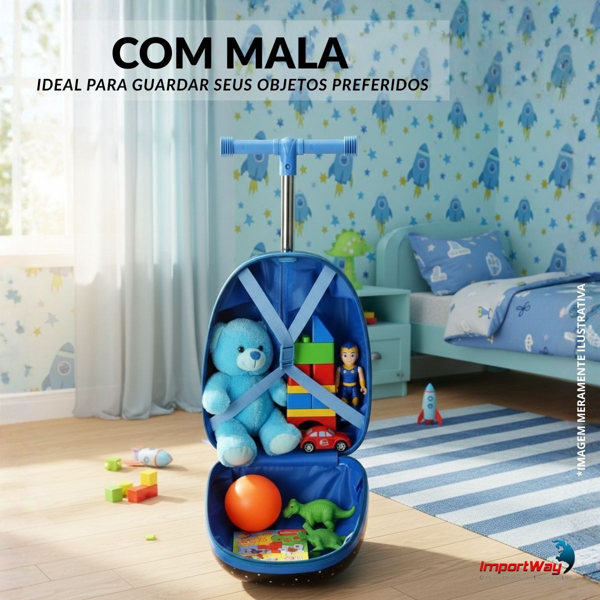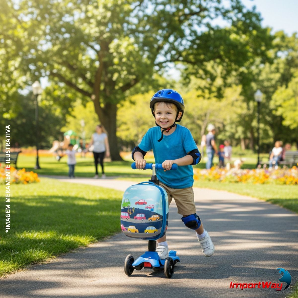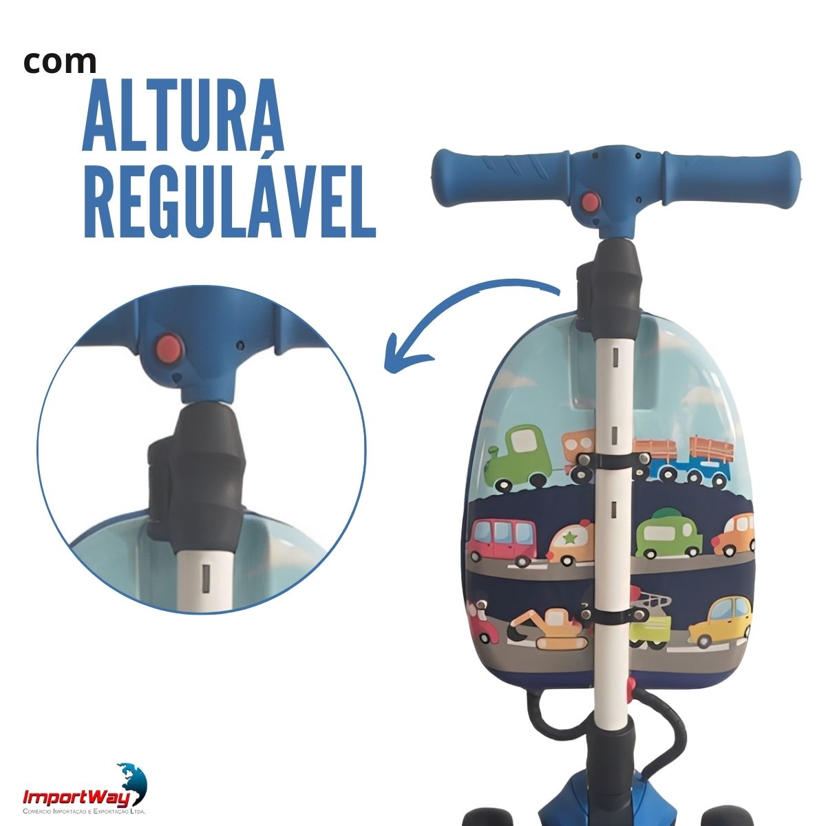 Patinete Elétrico Infantil 3 Rodas Com Mala Azul Importway