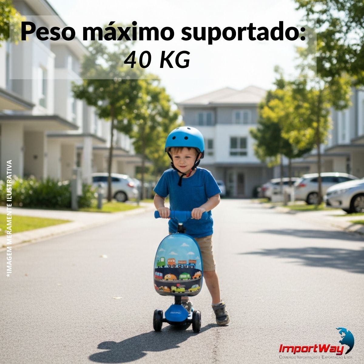 Ideal para passeios em áreas planas, o patinete oferece uma experiência segura, confortável e cheia de diversão, estimulando a coordenação motora e a autonomia dos pequenos.