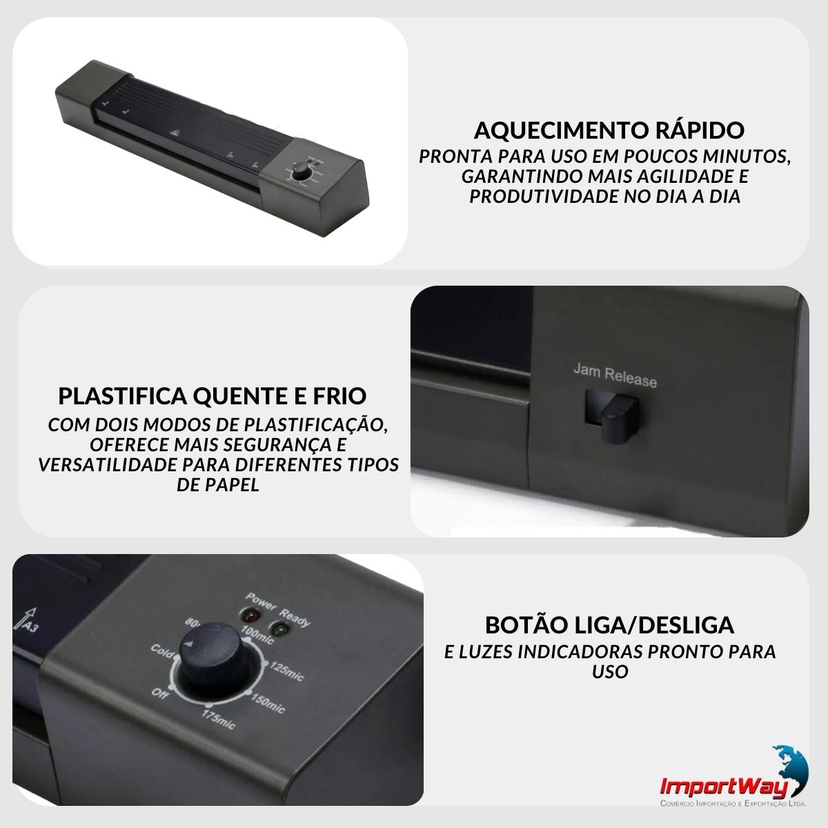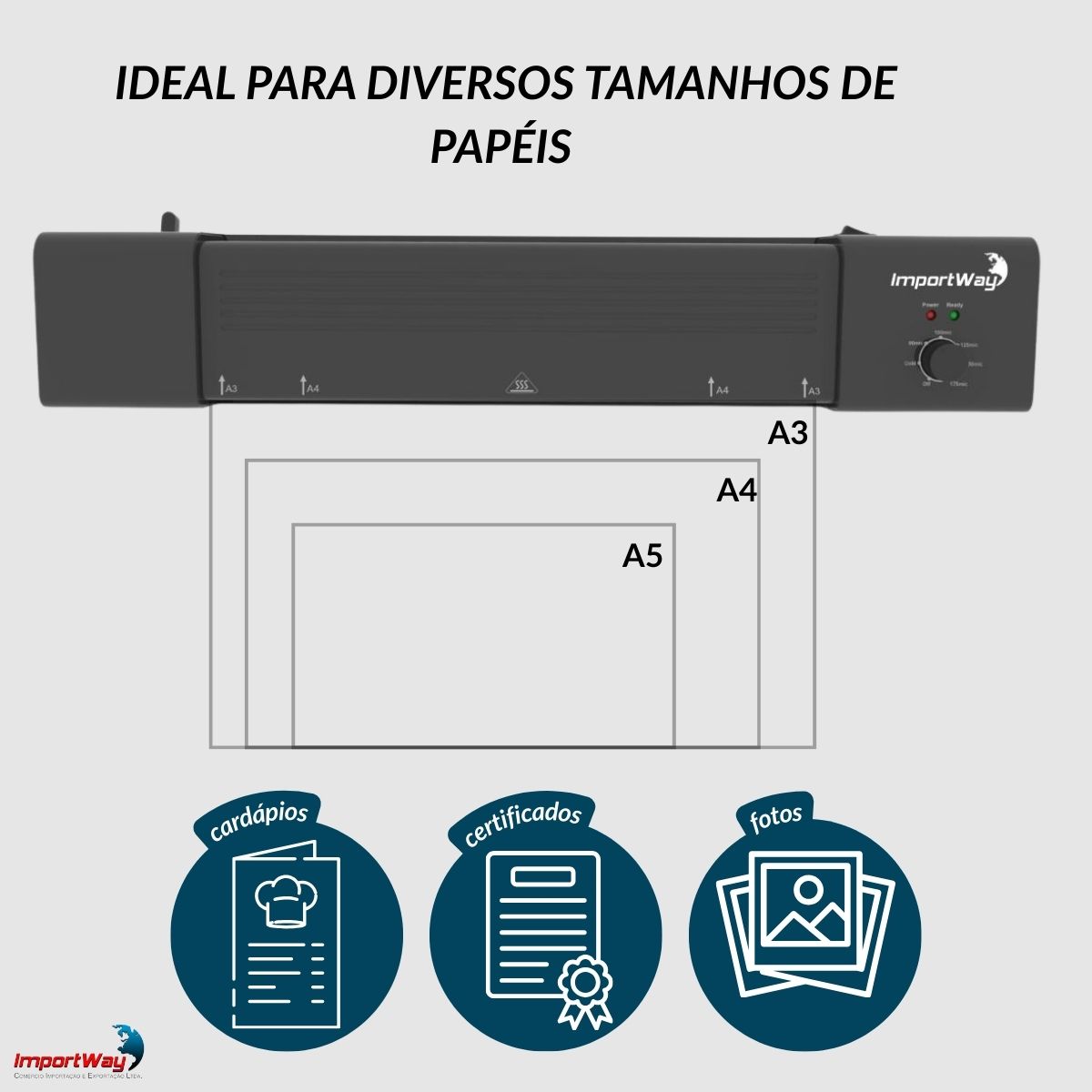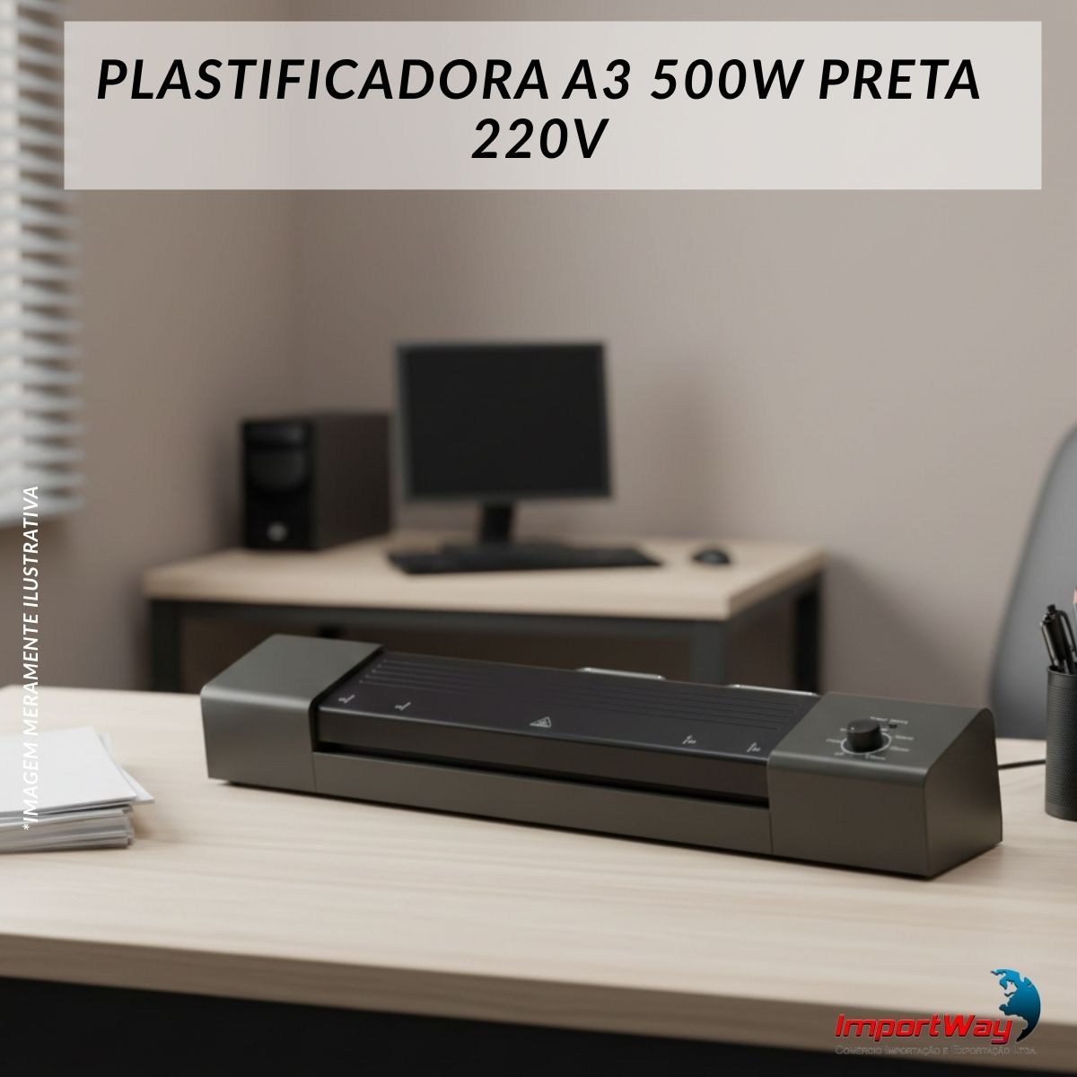 Plastificadora A3 500w 220v Documentos Escritório Preta Importway