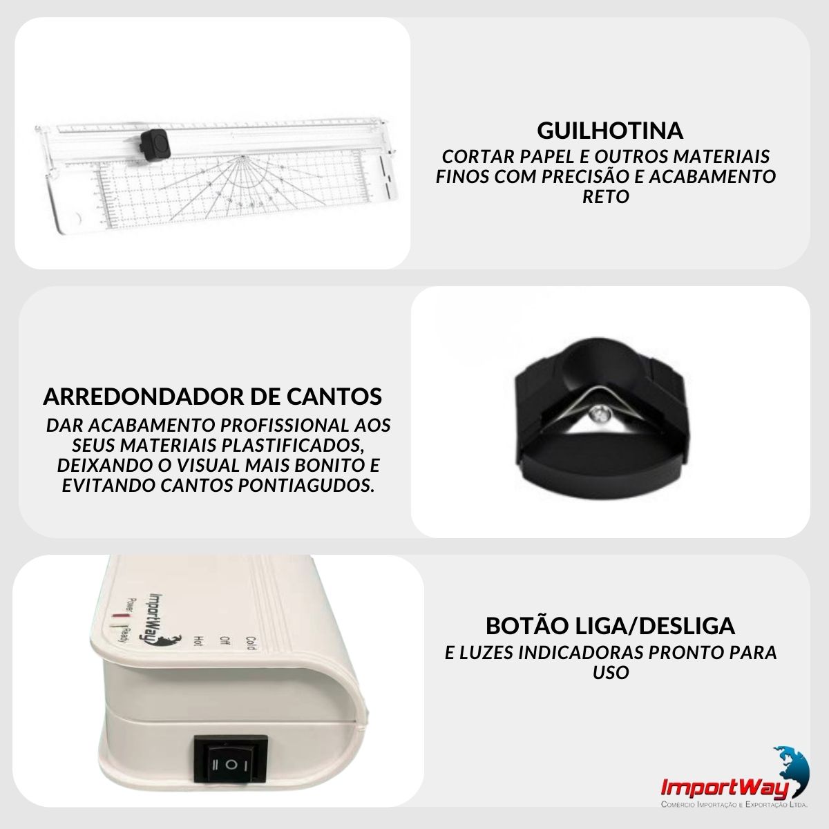 Plastificadora A4 300w C/ Kit Guilhotina Escritório 127V Importway