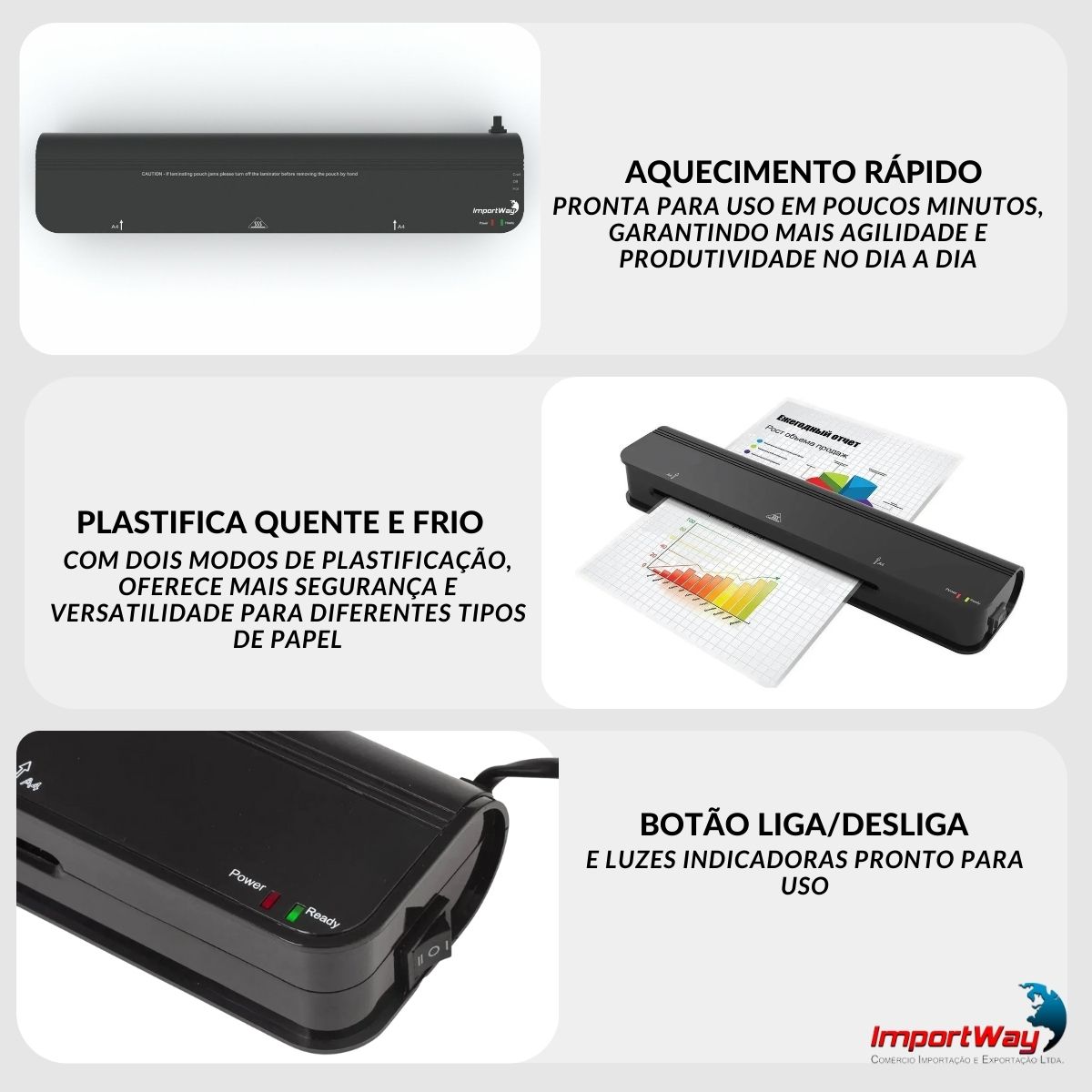 Plastificadora A4 300W 220V Para Documentos Escritório Preta Importway