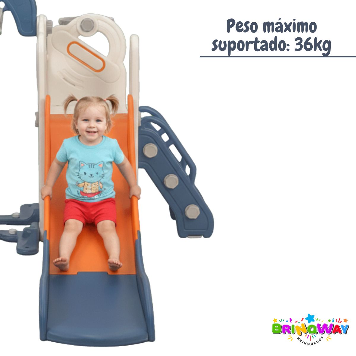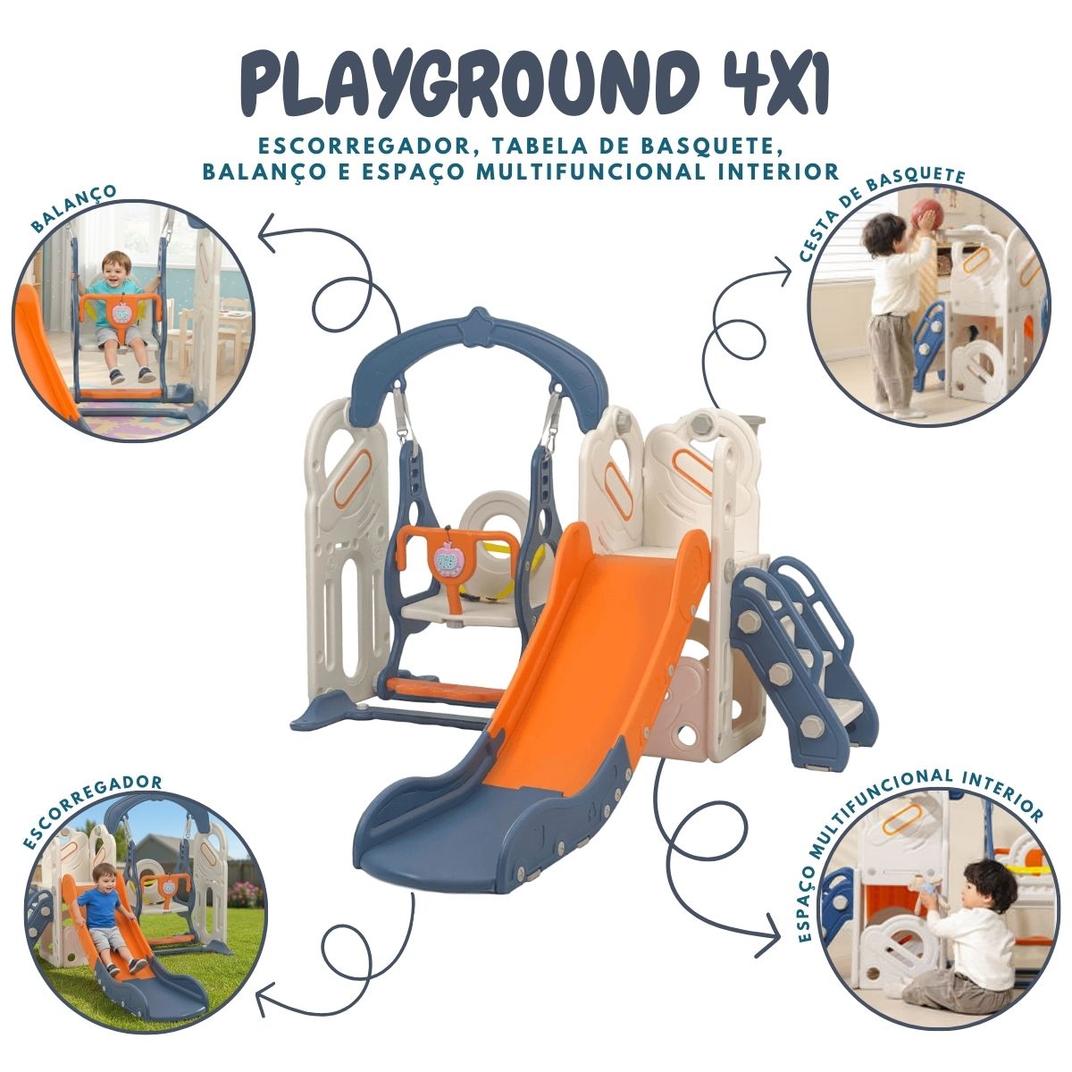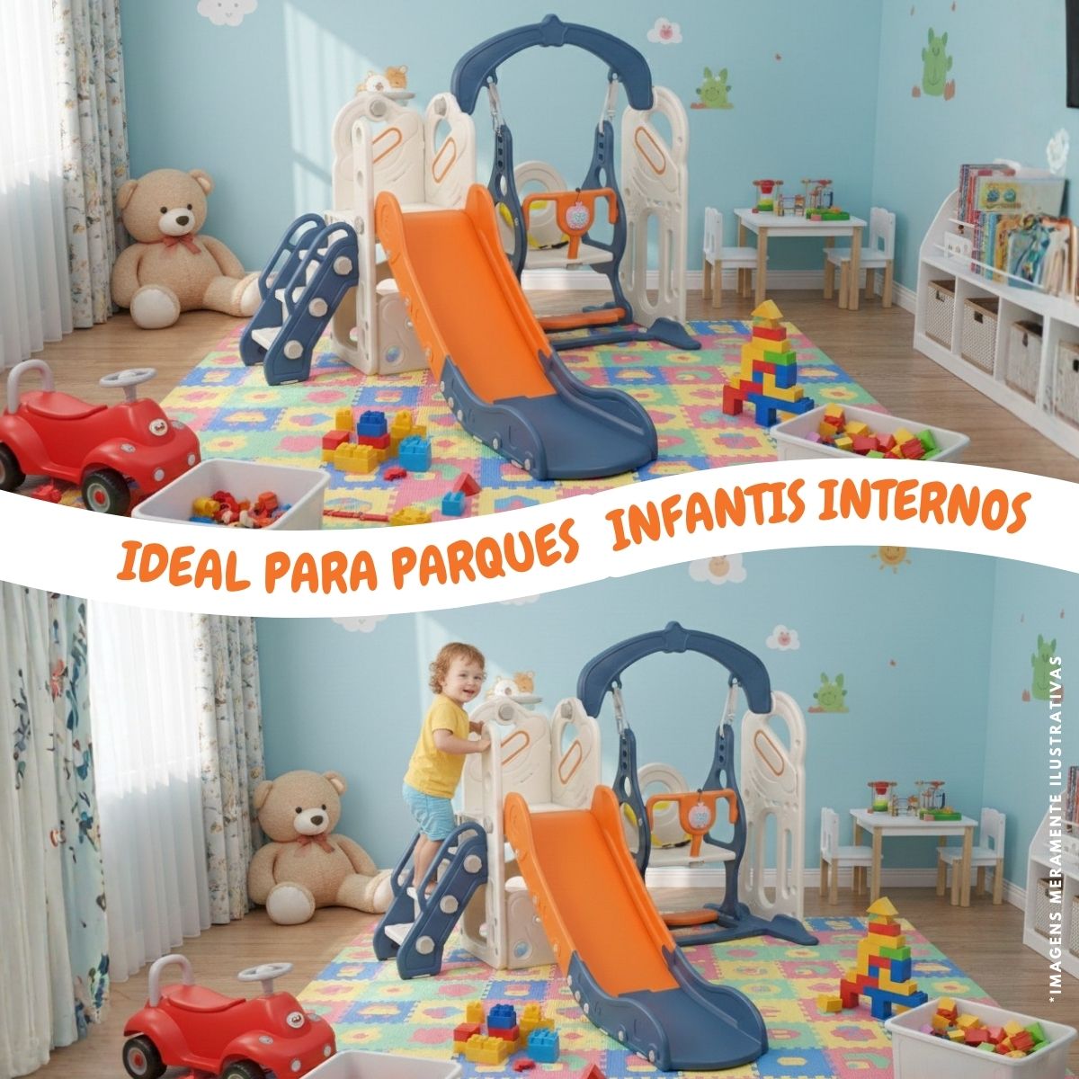 Playground 4 em 1 Infantil Escorregador Balanço Cesta Azul Importway