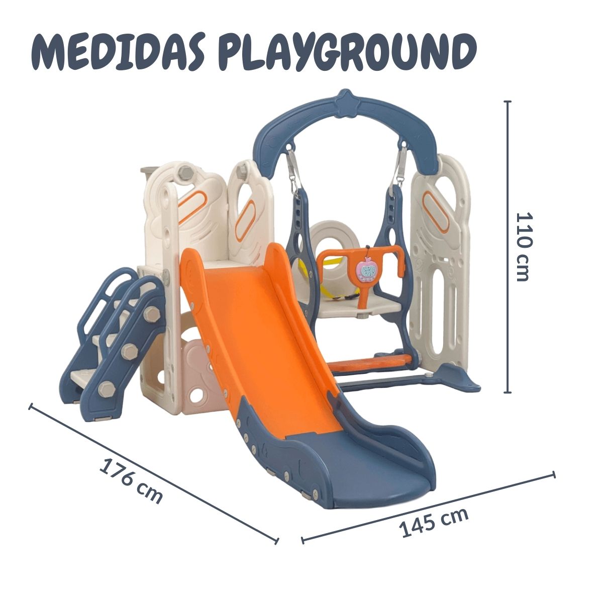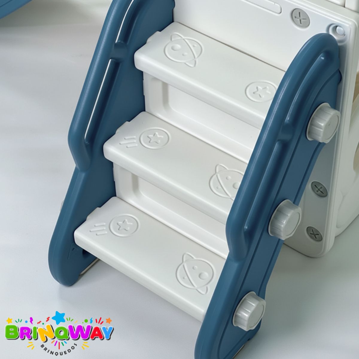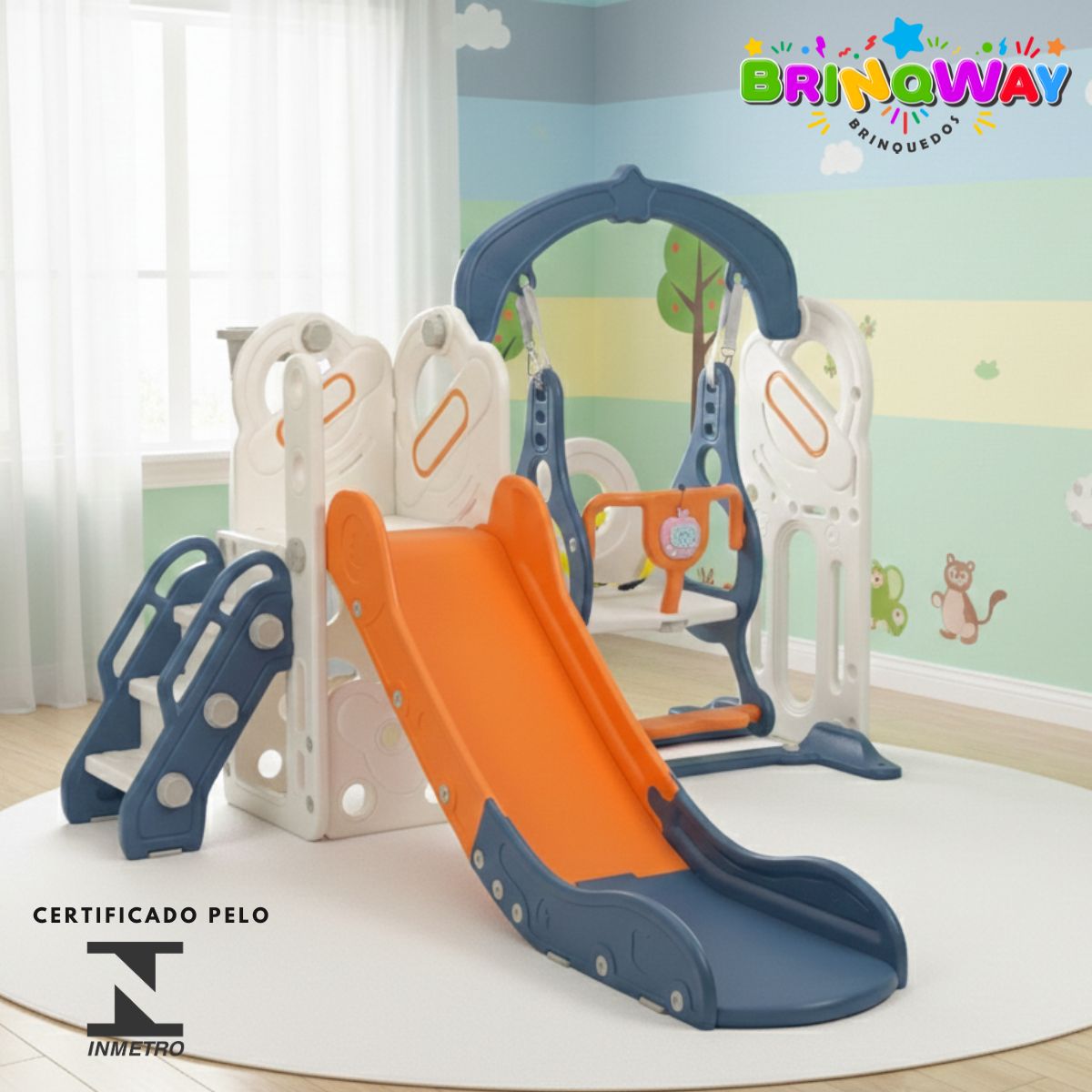 Playground 4 em 1 Infantil Escorregador Balanço Cesta Azul Importway