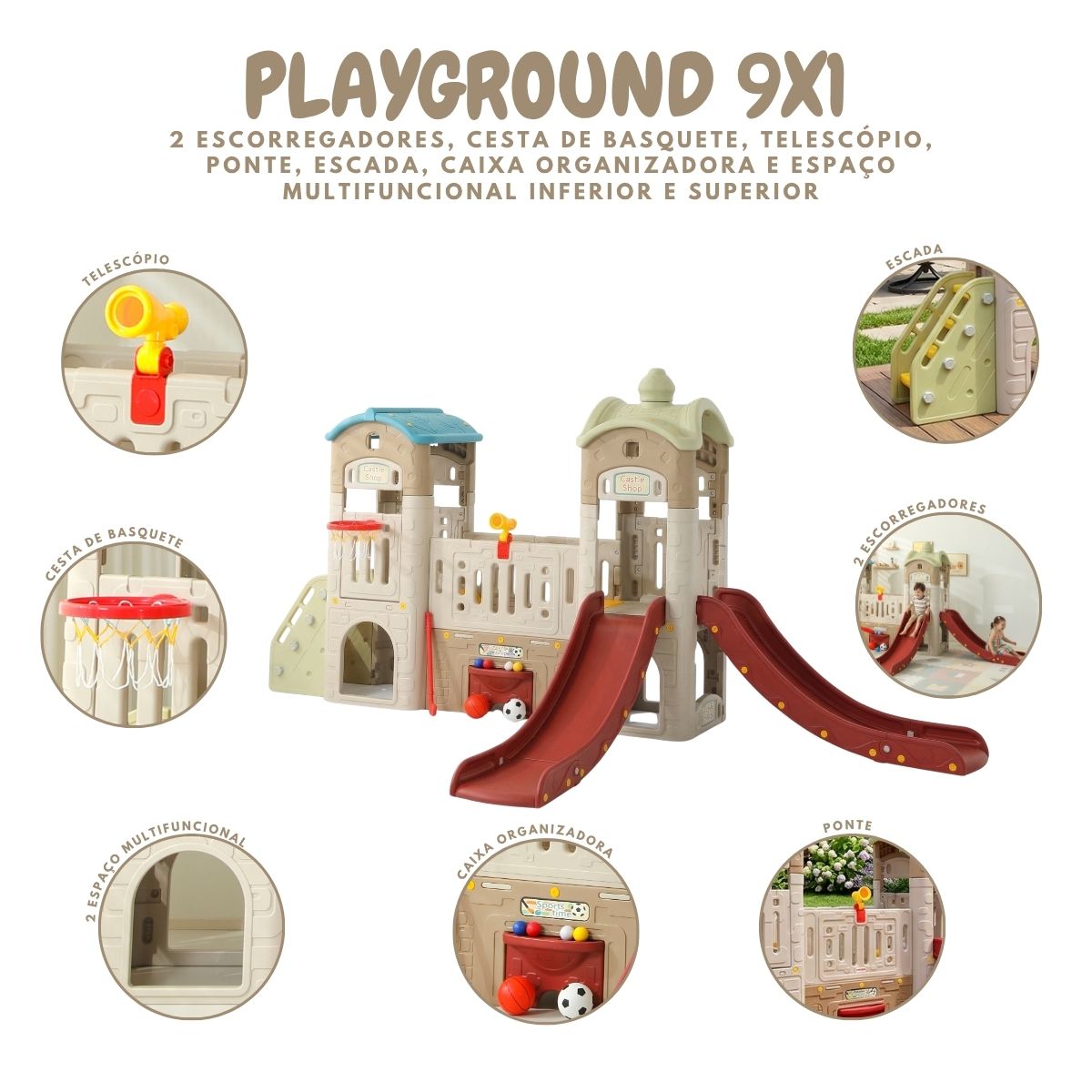 Playground Infantil PlayHouse 9x1 MultiAtividades Bege Importway