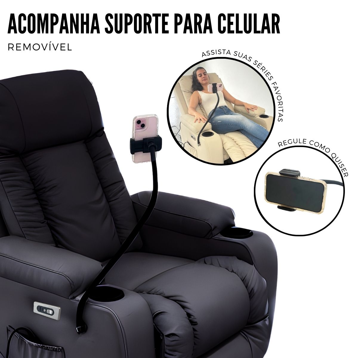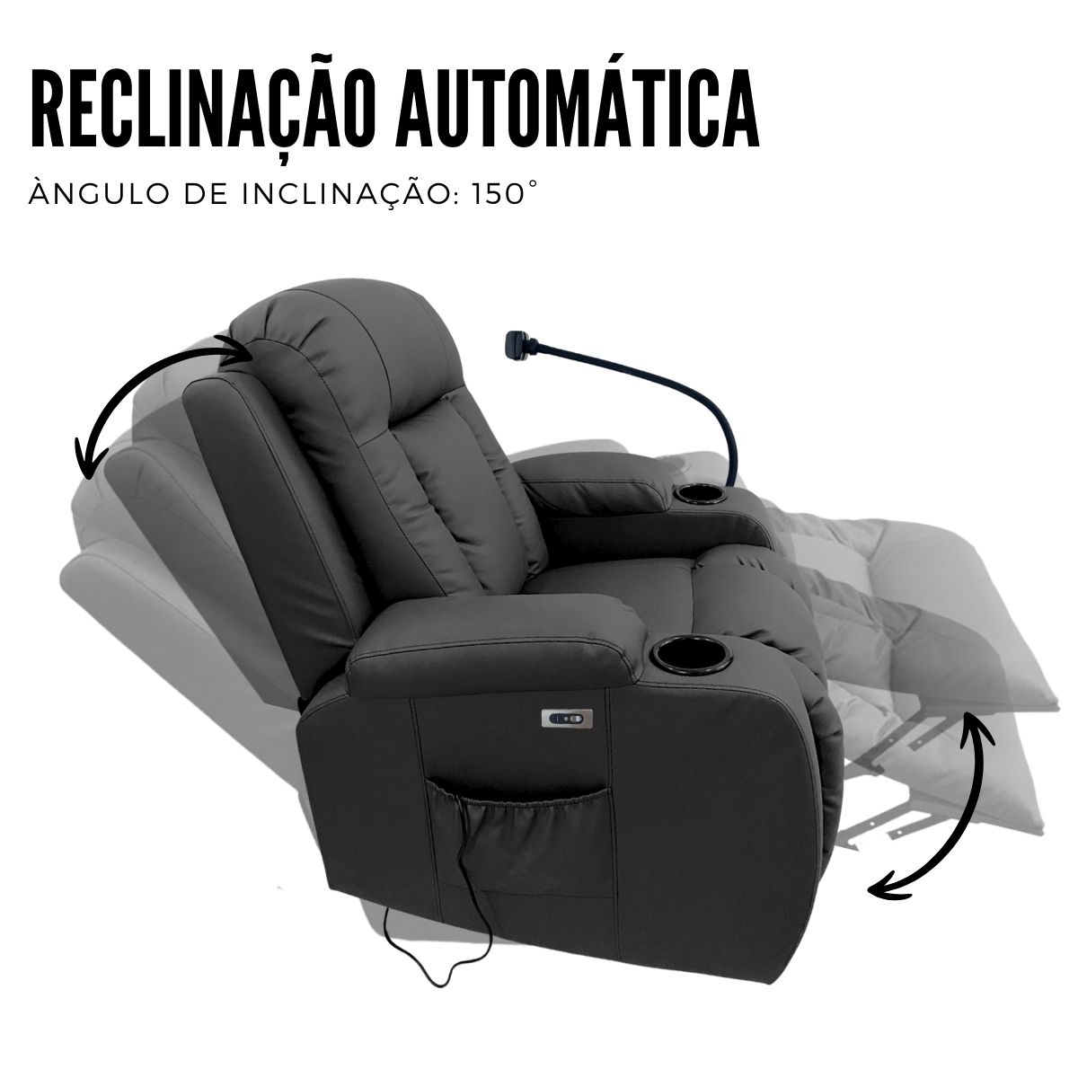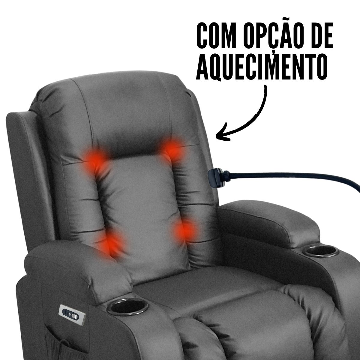 A Poltrona Reclinável Massagem/Aquecimento Suporte Celular Preto