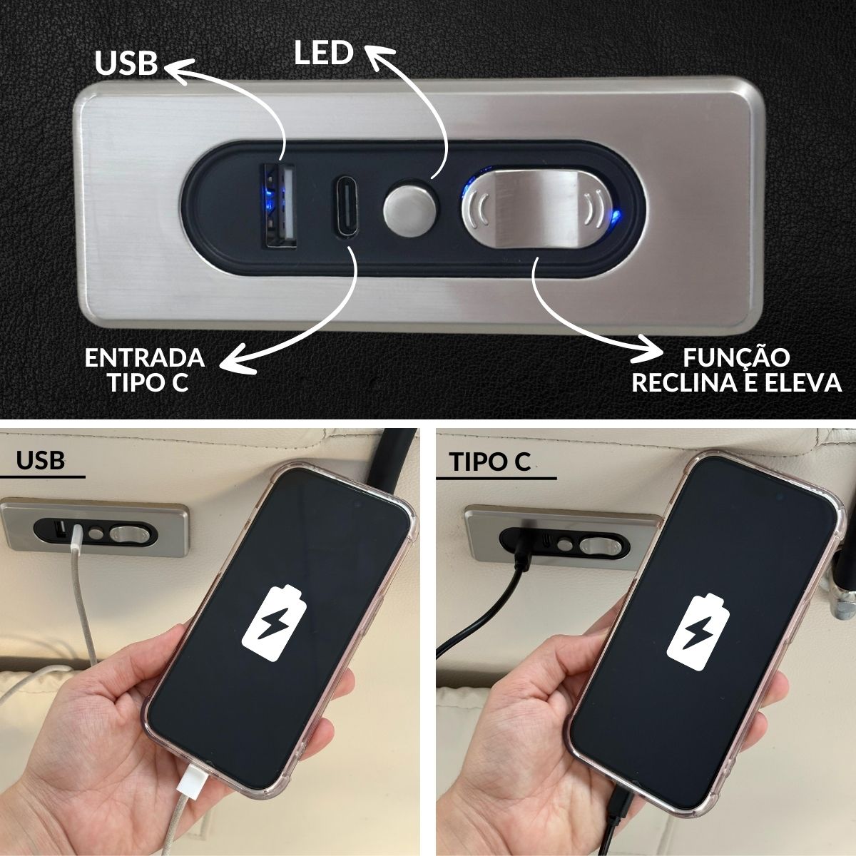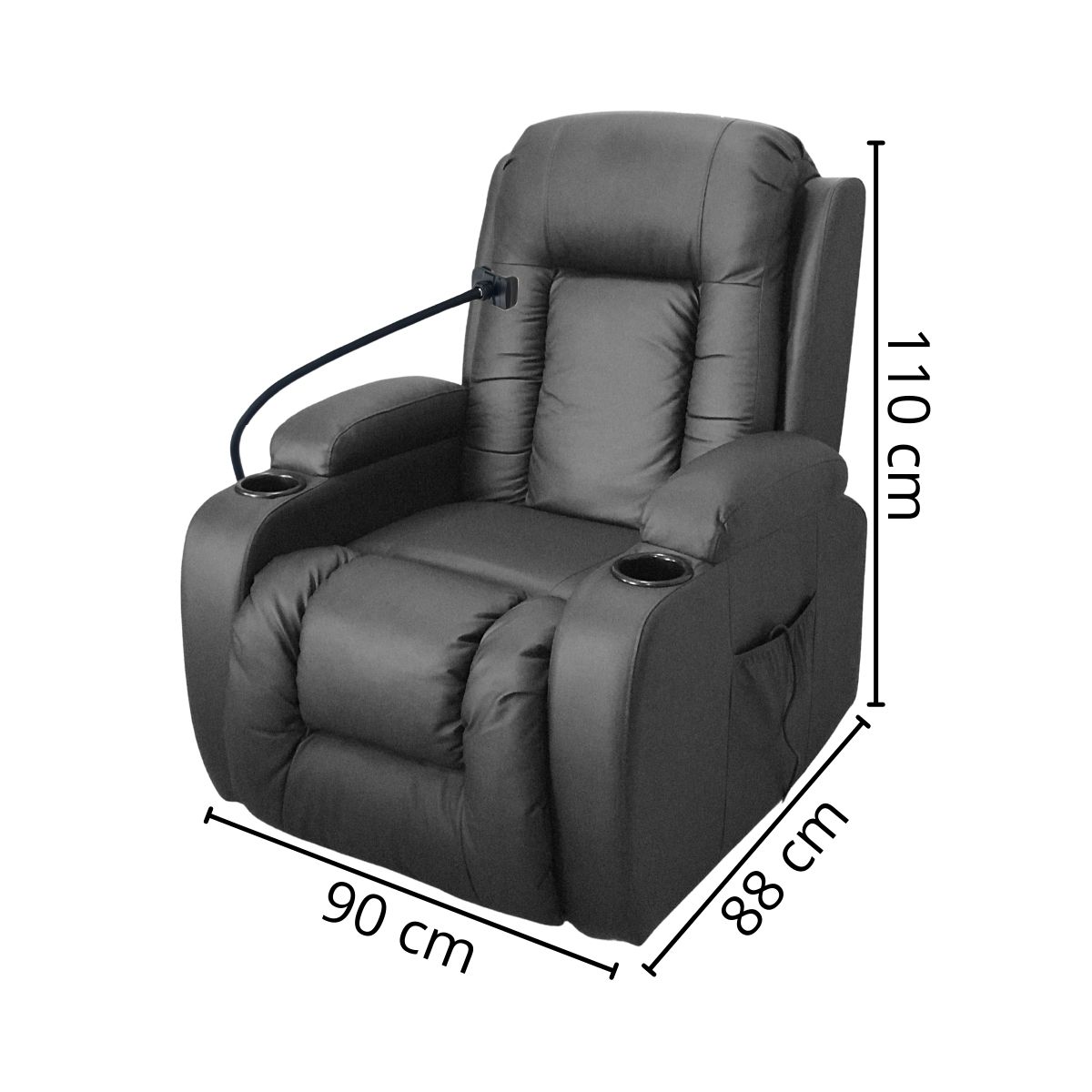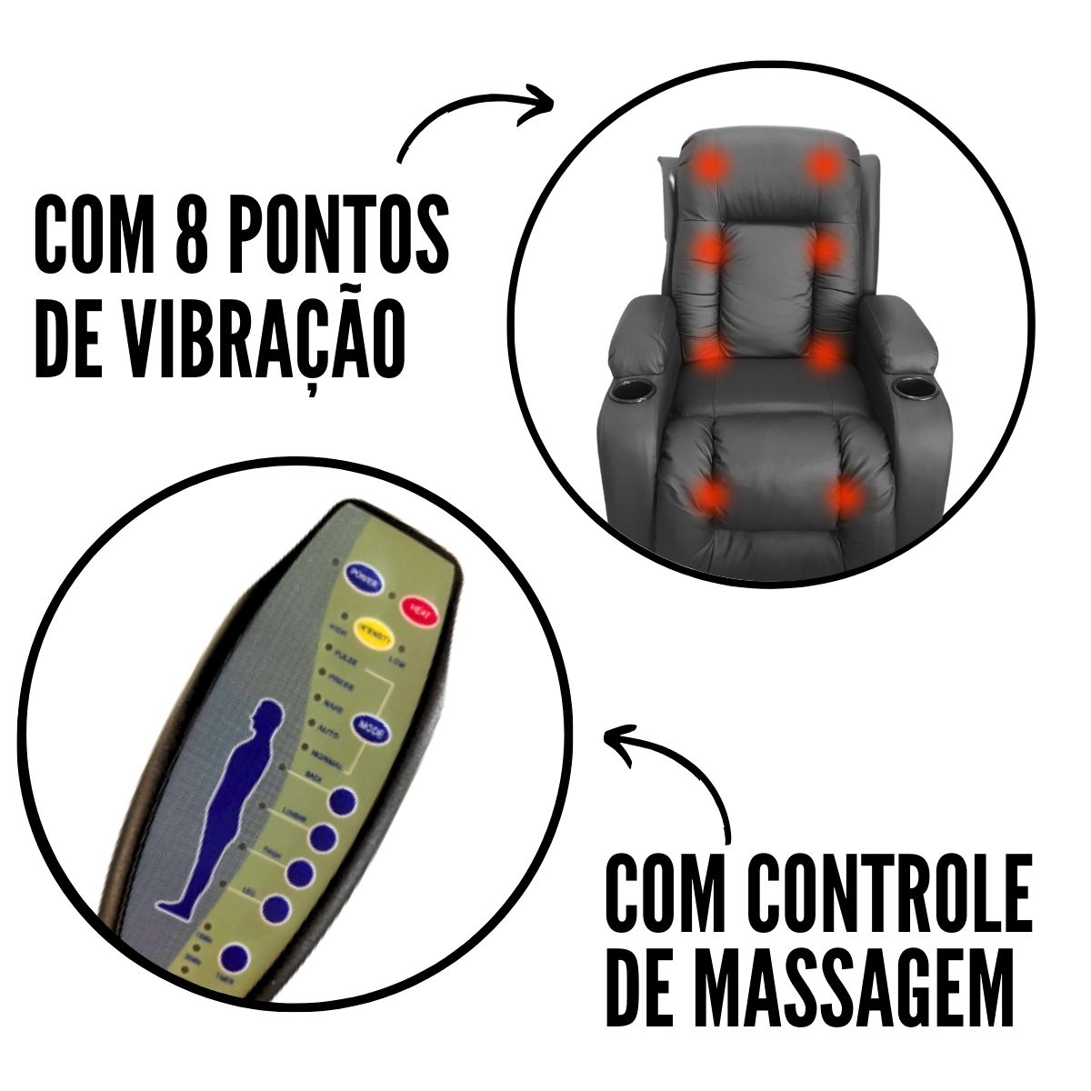A Poltrona Reclinável Massagem/Aquecimento Suporte Celular Preto