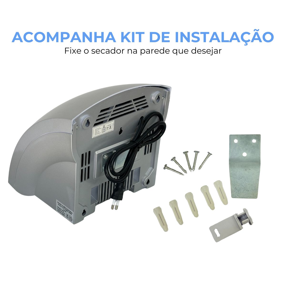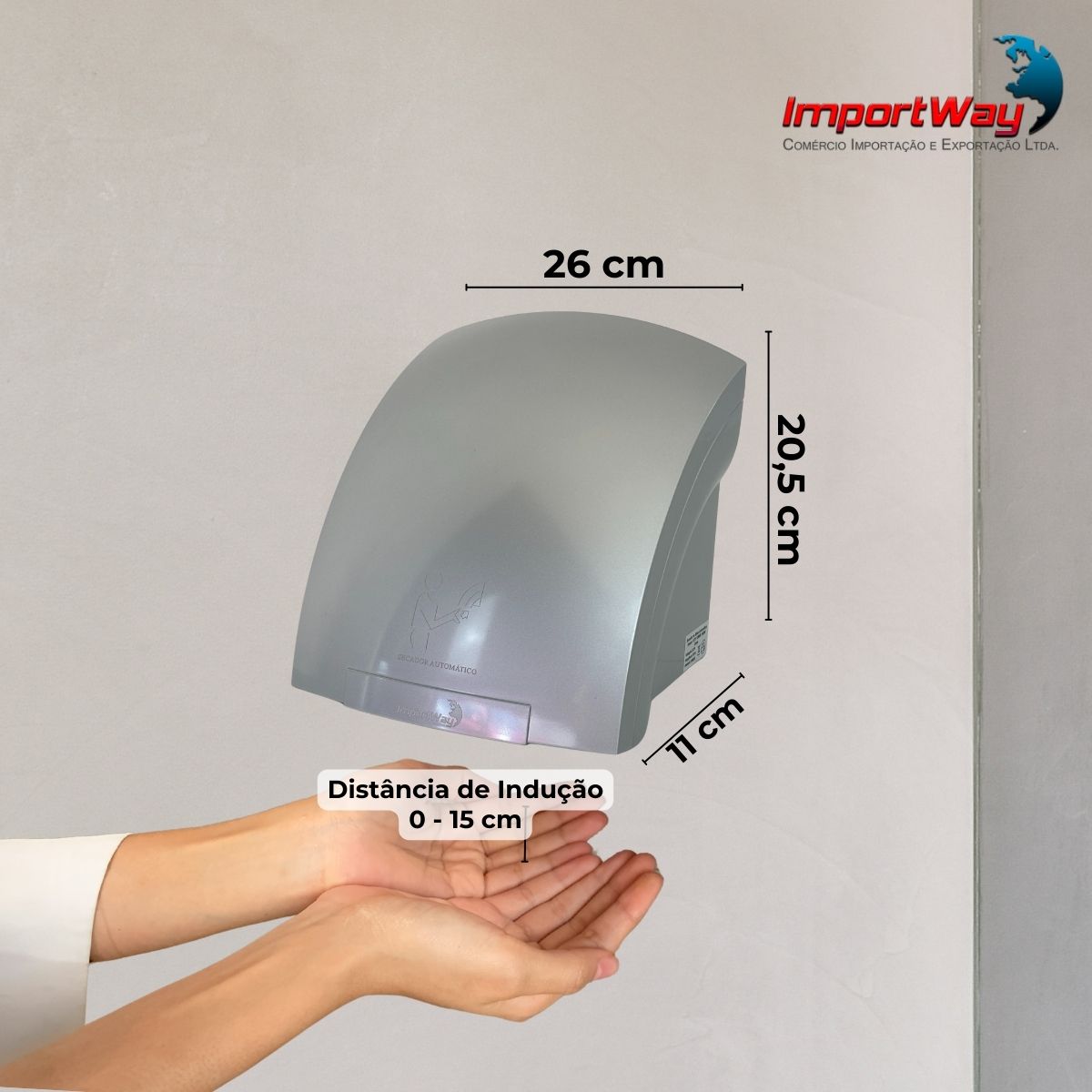 Secador de Mãos Automático Sensor Cinza 12 M/S 220V ImportWay