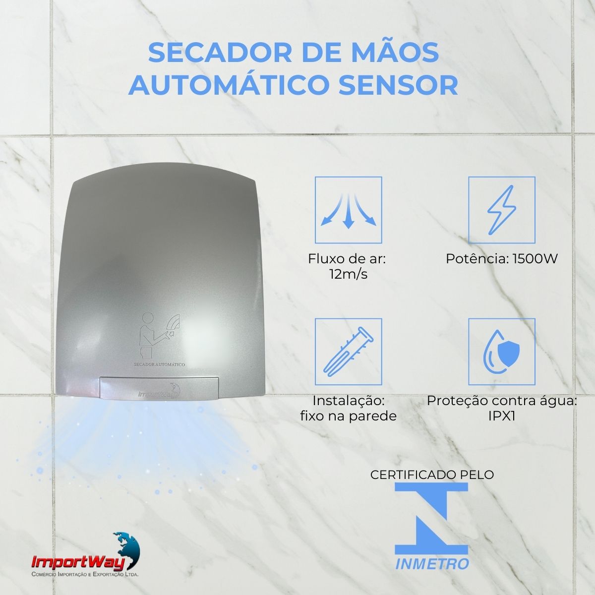 O Secador de Mãos Automático Sensor Cinza 12 M/S 220V ImportWay é a solução ideal para ambientes que buscam eficiência e praticidade. Com uma potência de 1500 W, este modelo IWSMA1202 proporciona um tempo de secagem impressionante de apenas 20 segundos, garantindo que seus usuários tenham uma experiência rápida e satisfatória.