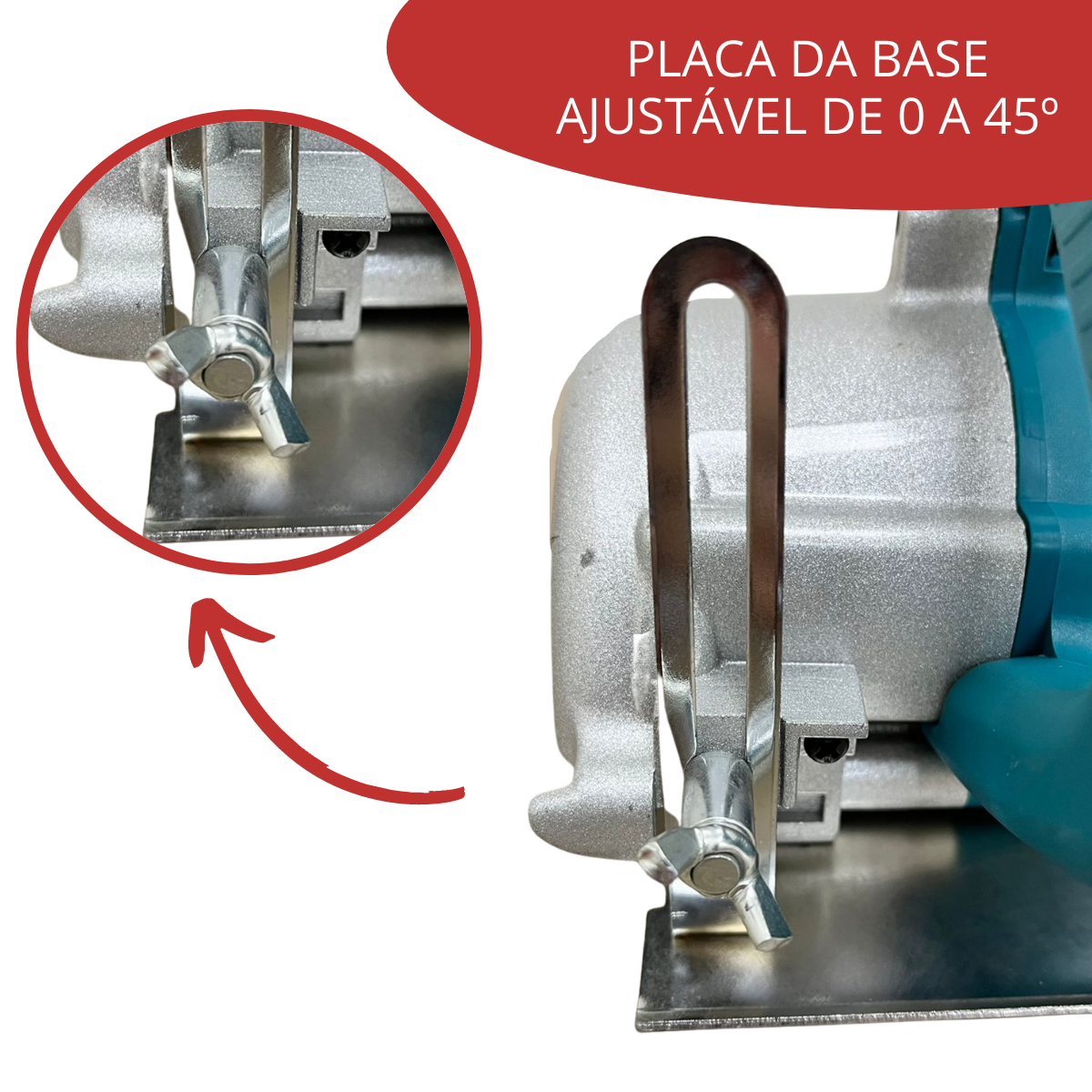 - Placa da base é ajustável de 0° a 45°
