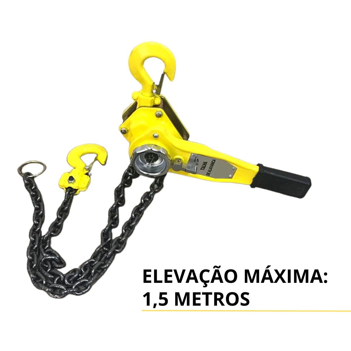 As correntes são de alta resistência e os ganchos possuem trava de segurança para evitar que a carga escorregue ou escape. As talhas manuais de alavanca são simples, versáteis e fáceis de utilizar. Elas são ideais para a elevação de objetos ou máquinas com segurança.